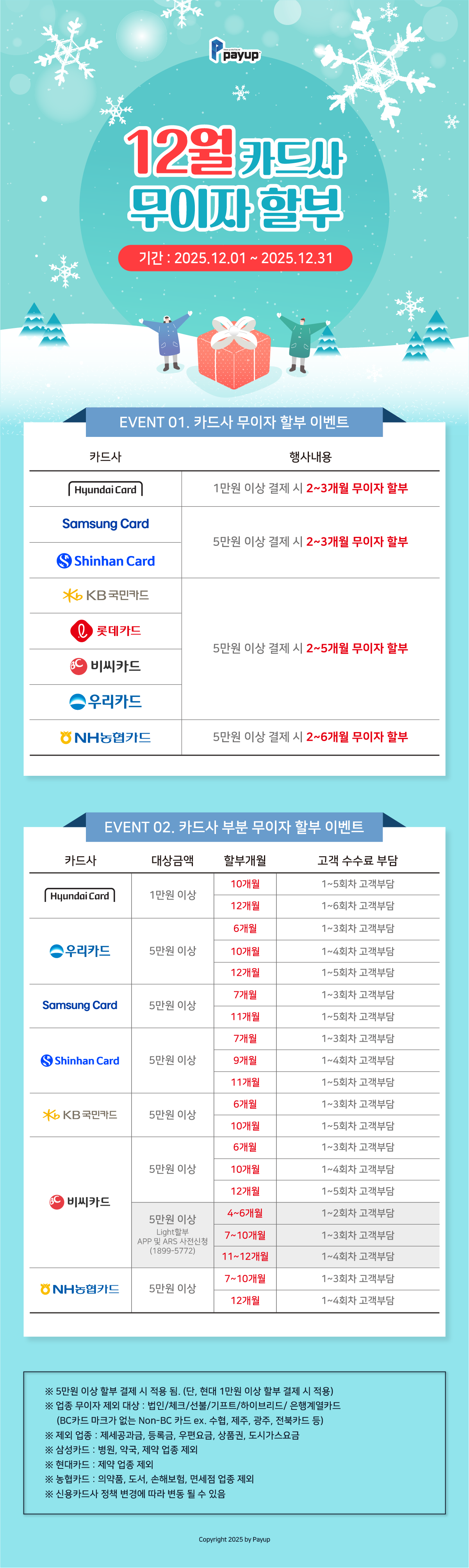 [무이자] 2025년 12월 신용카드 무이자할부 행사 안내